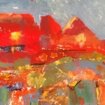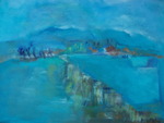met acrylverf heb ik landschappen uitgebeeld. Ingelijst in blank houten lijst.